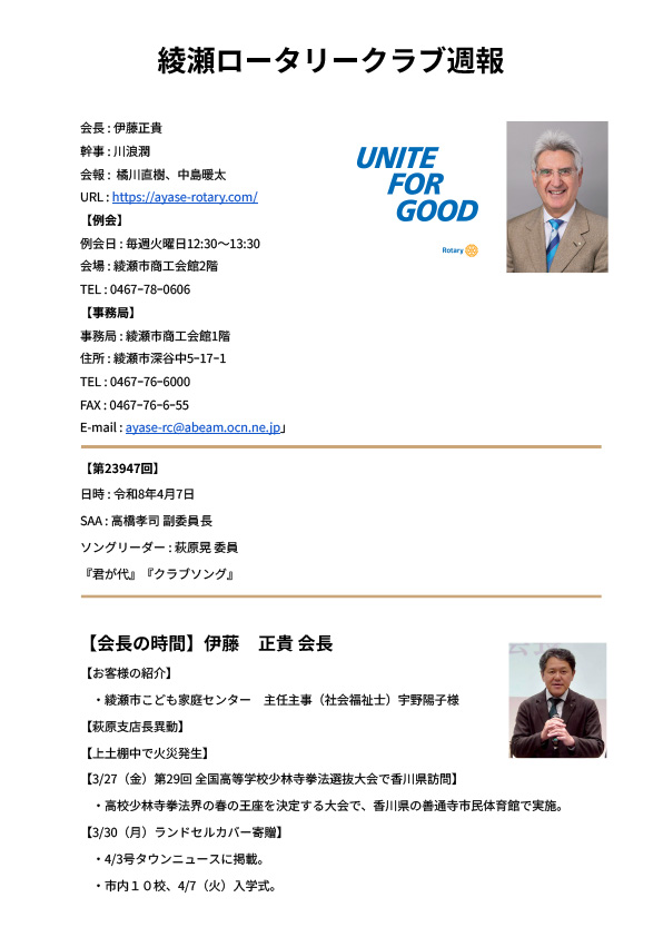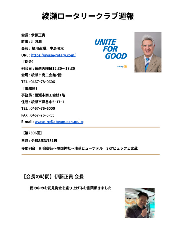 第2396回例会 週報 令和8年3月31日